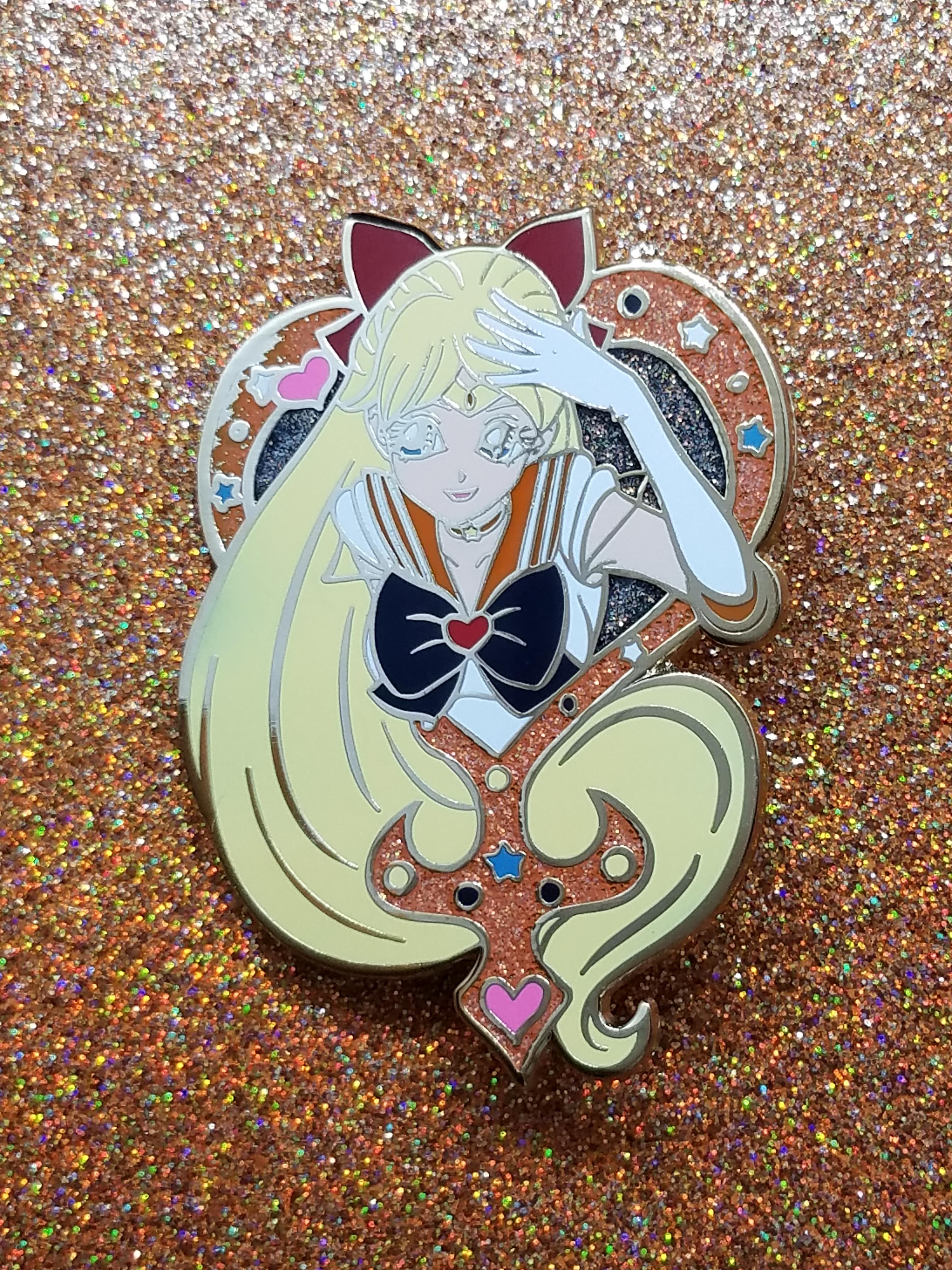 The Beautiful Solider of Love Hard Enaml Pin. Stands 2.5 inch tall, Hard Enamel with Gold Plating and Orange Glitter.