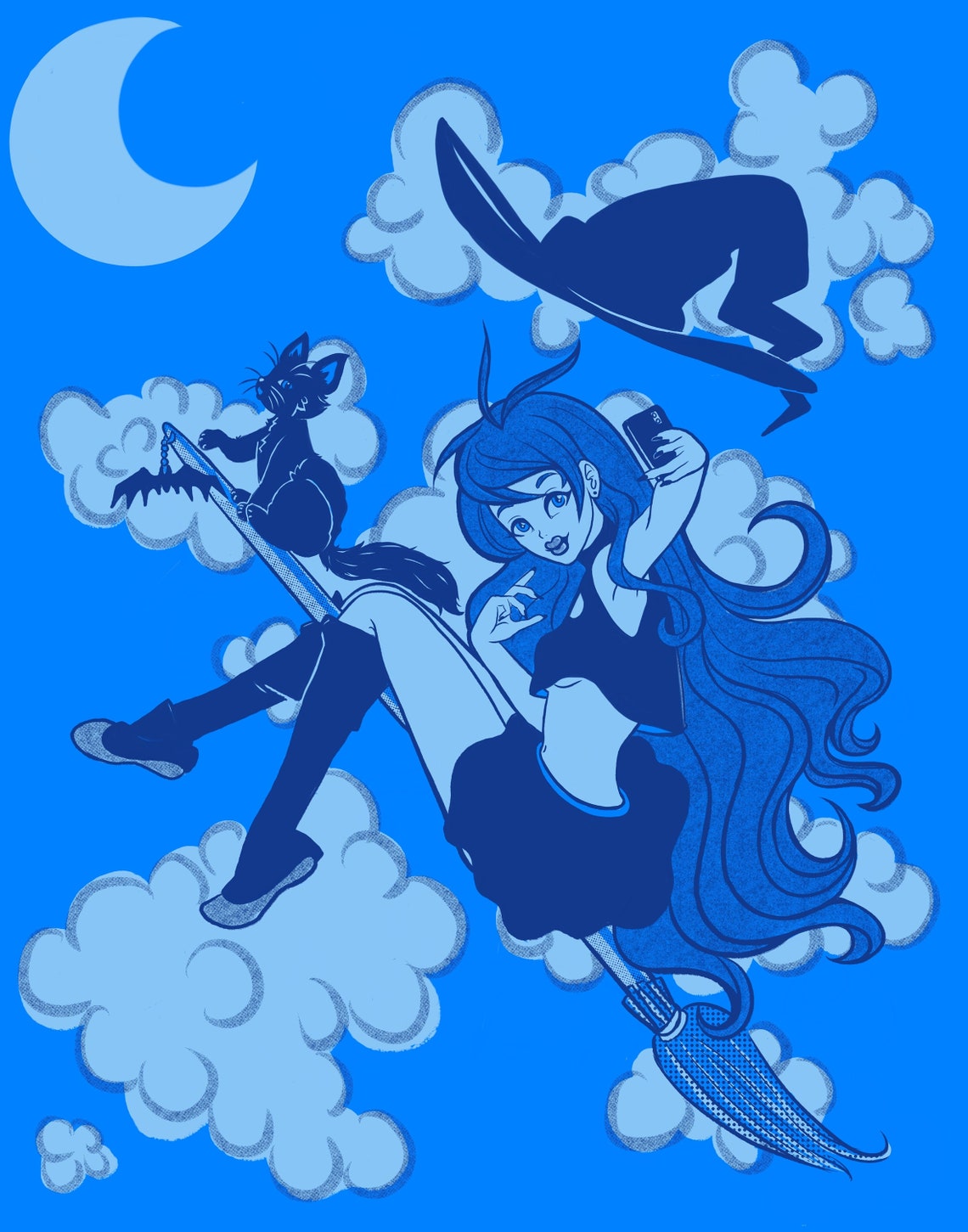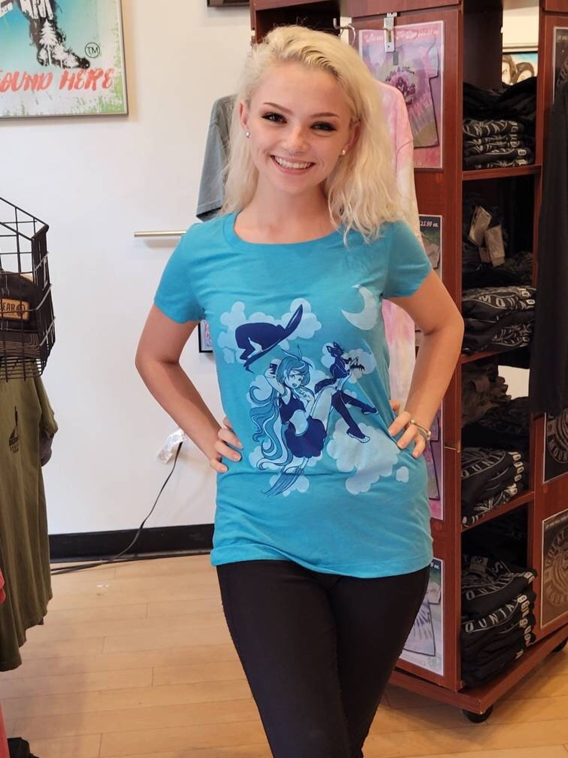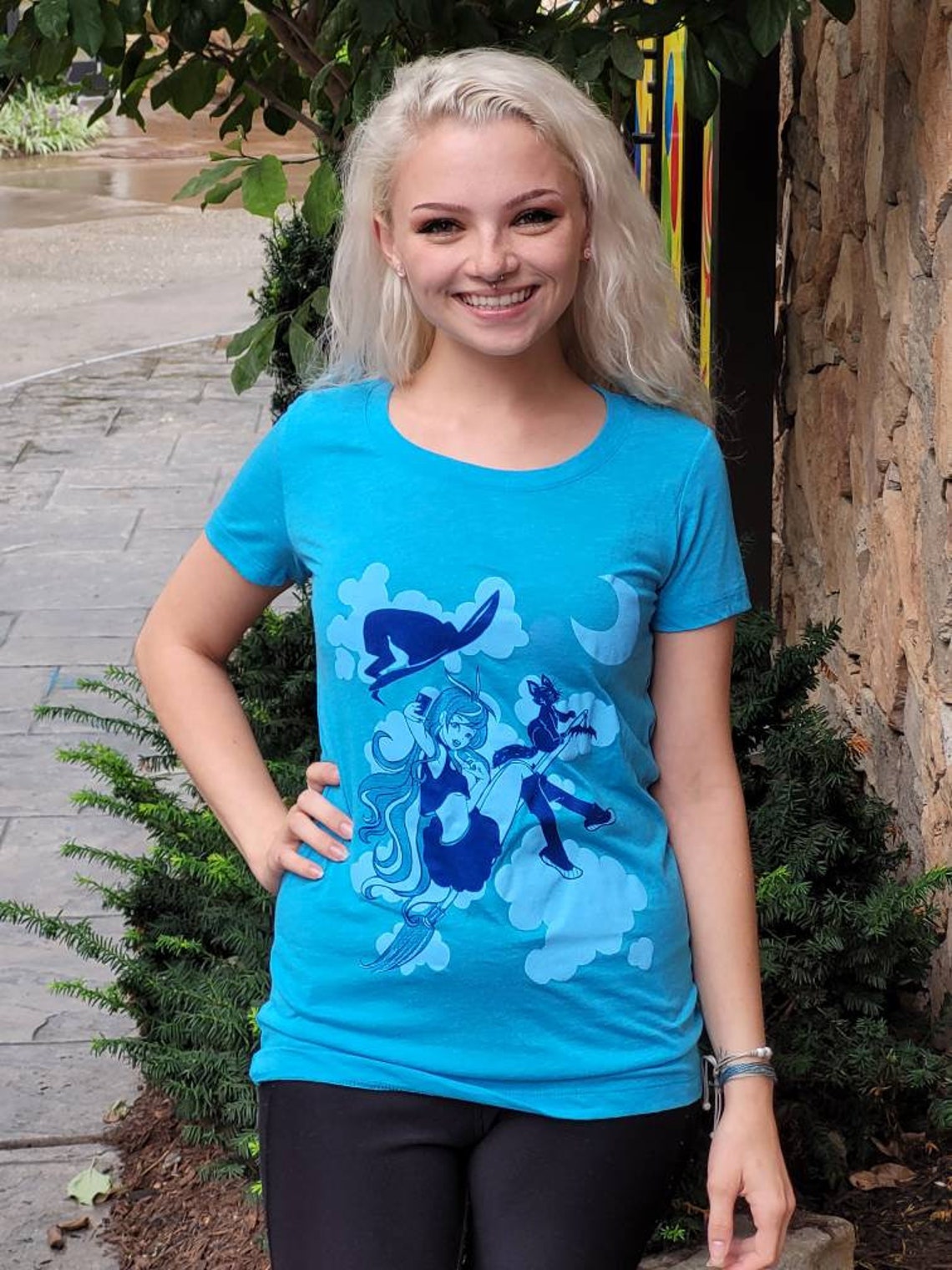 This fun Witch themed Monochromatic Woman's Tee Shirt is perfect for any lover of Blue and Witches.